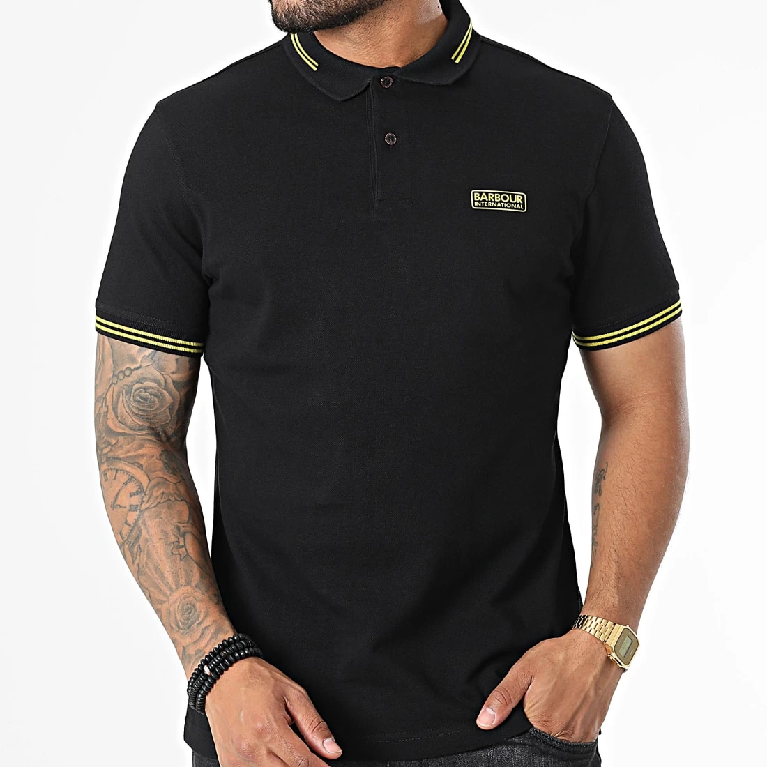 • Polo manches courtes élégant tendance avec visuel Barbour International appliqué