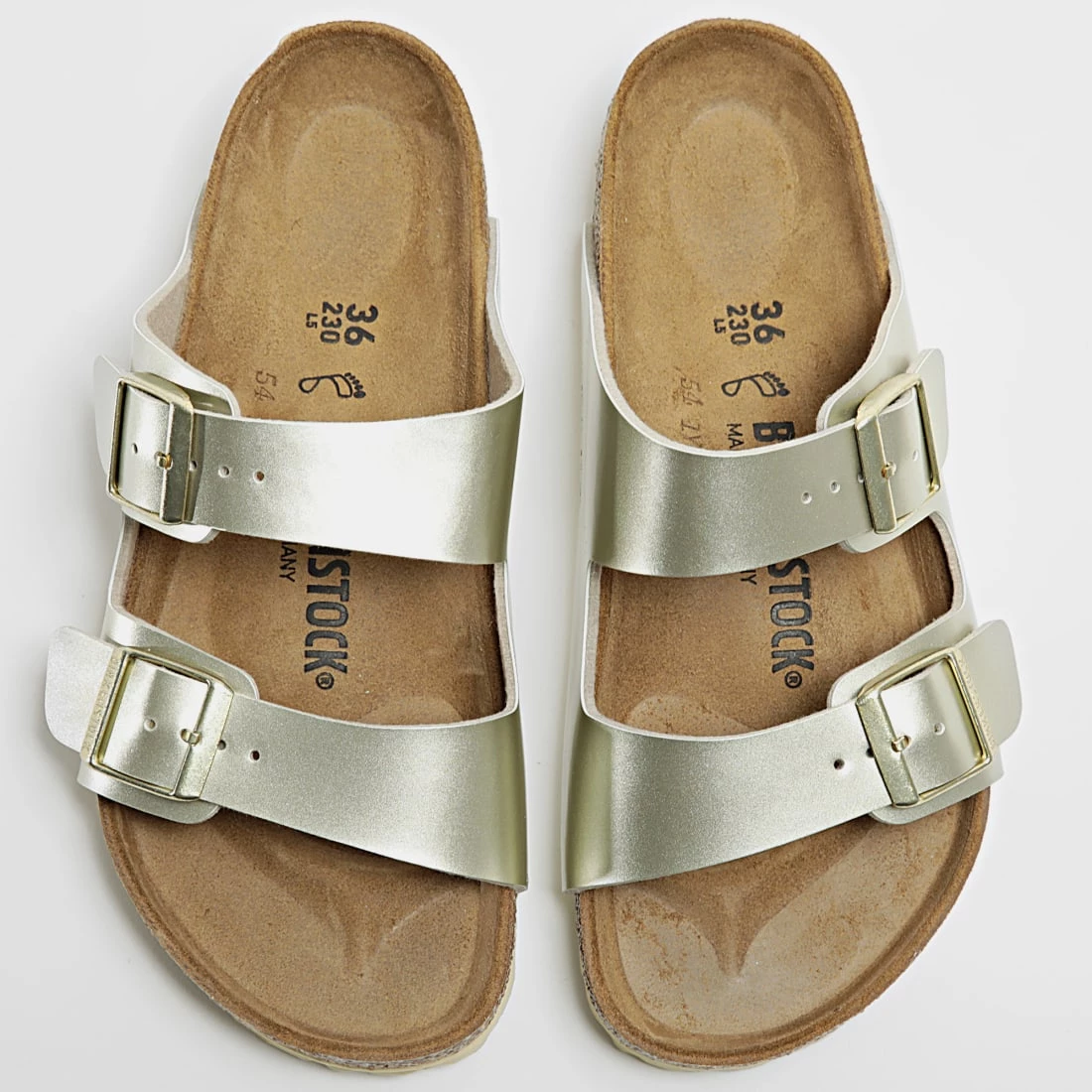 Bon marché 🎁 Sandales Femme Arizona Electric Metallic Gold de Birkenstock 🔔