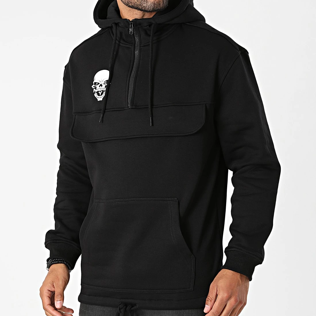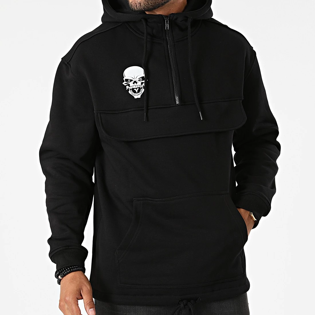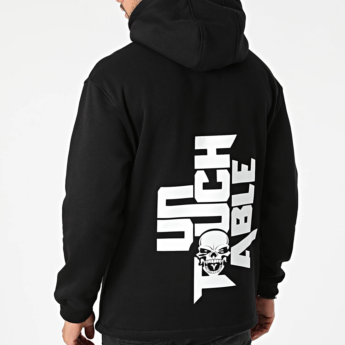 • Sweat capuche semi zippé imprimé logo skull Untouchable sur la poitrine et grand visuel au dos