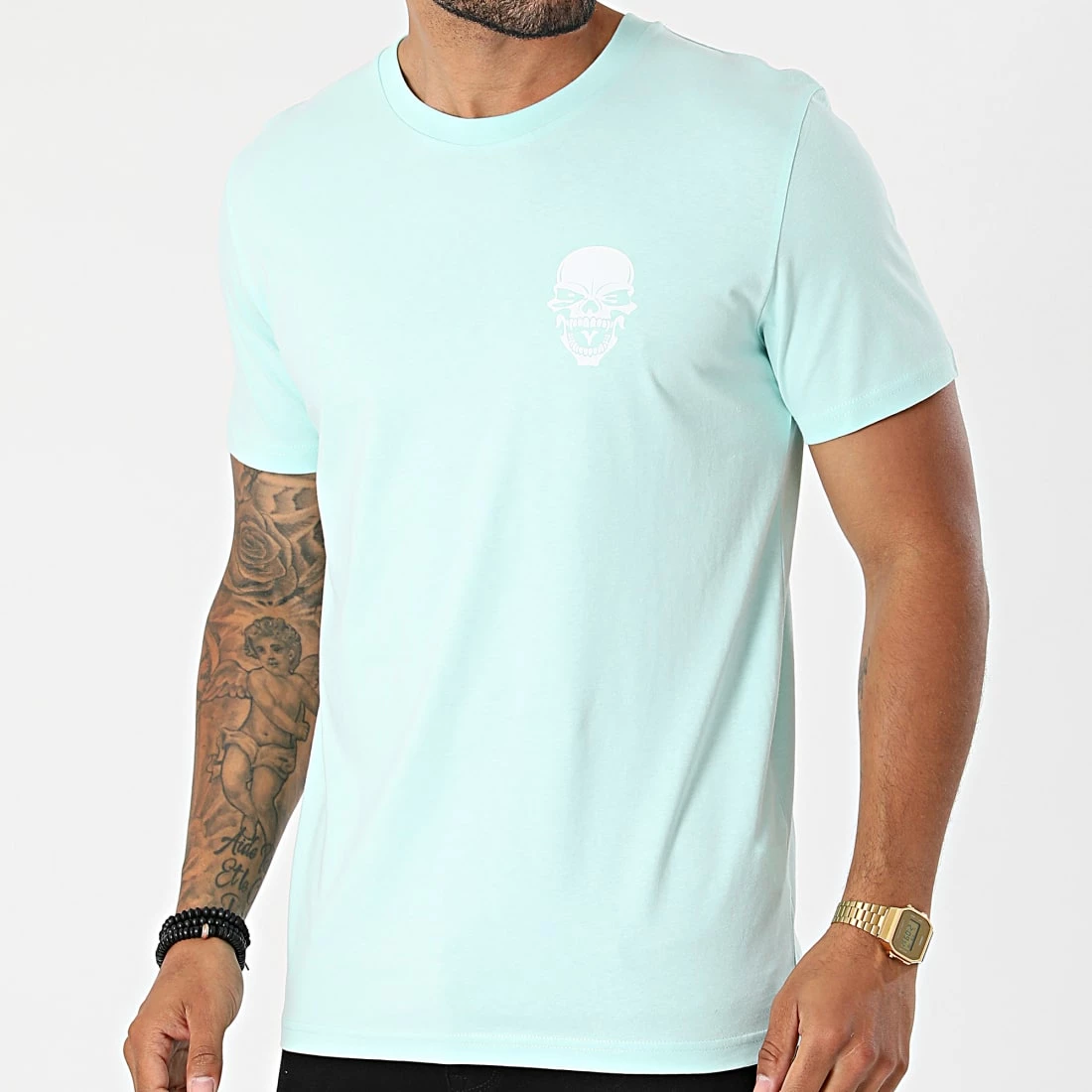 • Tee shirt imprimé logo skull Untouchable sur la poitrine et grand visuel au dos